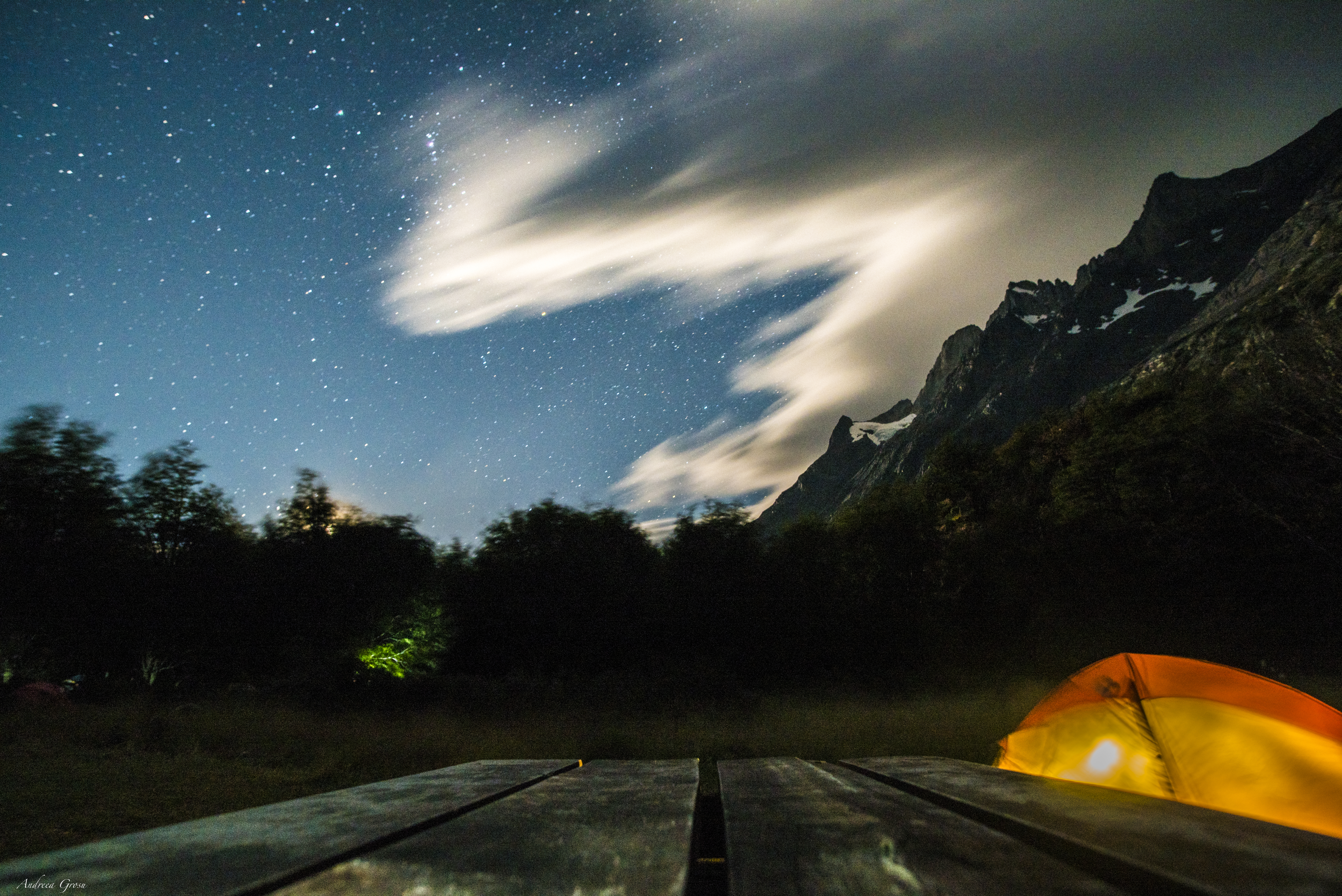 During the night we had beautiful view of mountain with stars and clouds.